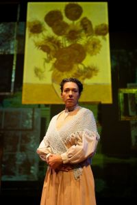But Joanna persisted, with heroic stubbornness. And the stage itself, with Ami Farrow’s burnished wood set, dominated and glowingly animated by Matt Schuurman’s projections of Van Gogh paintings, in close-up and long shots, always in motion along with our optical distance, is a testament to the ultimate vindication of the crusader, an art suffragist if ever there was one.