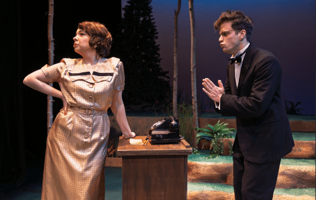 Rachel Bowron and Mathew Hulshof in On The Banks Of The Nut, Teatro Live! Photo by Marc J Chalifoux