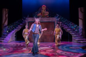 A Midsummer Night’s Dream: The ’70s Musical. Luc Tellier (centre) as Puck, Citadel Theatre. Costumes by Deanna Finnman, set by Hanne Loosen, lighting by Jareth Li. Photo by Nanc Price.