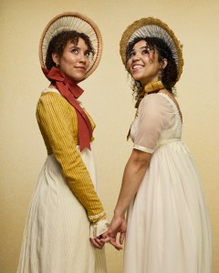 Jessica B. Hill as Elinor Dashwood (left) and Olivia Sinclair-Brisbane as Marianne Dashwood, Sense and Sensibility. Stratford Festival 2025. Photo: Ted Belton\.
