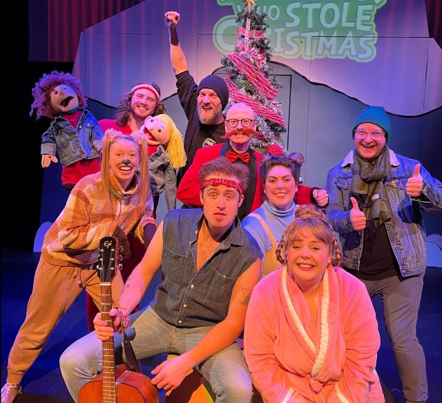 The script is by Gordie Lucius and Joleen Ballentine, the songs by Erik Mortimer and Chris Borger. And at every performance, a different secret guest star arrives on stage, as a character of their choice, unknown in advance to their impromptu cast-mates. So the five actors who’ve actually been to rehearsal and learned their lines have to improvise around the hitherto unknown villain of Grinch-ian provenance. And, as you’ll glean, comic chaos ensues, and every performance is different.