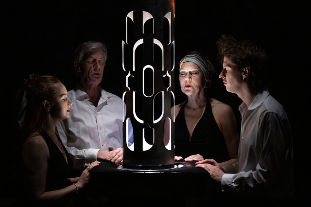 Allison Lynch, Andy Curtis, Denise Clarke, Geoffrey Simon Brown in Dream Machine, One Yellow Rabbit. Photo by Benjamin Laird.