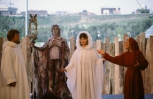 Northern Light was on a roll. In 1980, Edmonton acquired its first summer Shakespeare when NLT put a big red-and-white striped tent in the river valley down by the Muttart (you know it as Folk Fest hill). And they did big-cast al fresco Shakespeare and Shaw under that big top: first year A Midsummer Night’s Dream and As You Like It and A Winter’s Tale the second.