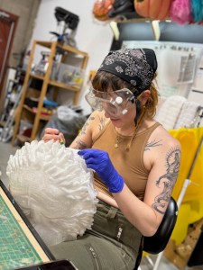 Leah Carmichael, painting the hyena for Life of Pi, Puppet Stuff Canada. Citadel Theatre, photo supplied.