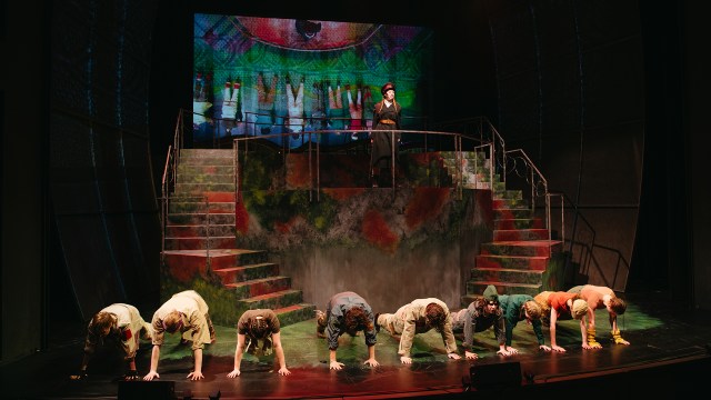 Which brings Williams back to his own play. “All through the workshops and dramaturging, I worked exclusively with Indigenous artists,” he says. But as for the production we’ll see, with its 12-member cast exclusively of BFA graduating actors, “in an alternative reality the characters are not racially identified. Anyone can play the roles….”