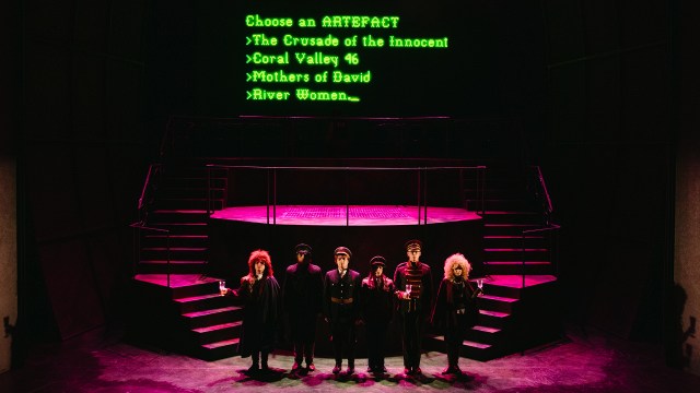 Deserters owes its theatrical concept, and the aesthetic to ‘80s text-based computer games, ‘Wumpus’ among them…. Video games in the old days you have to visualize in your imagination,” unlike the current crop. “In the alternative reality of the play, the vast majority of the population is female.”